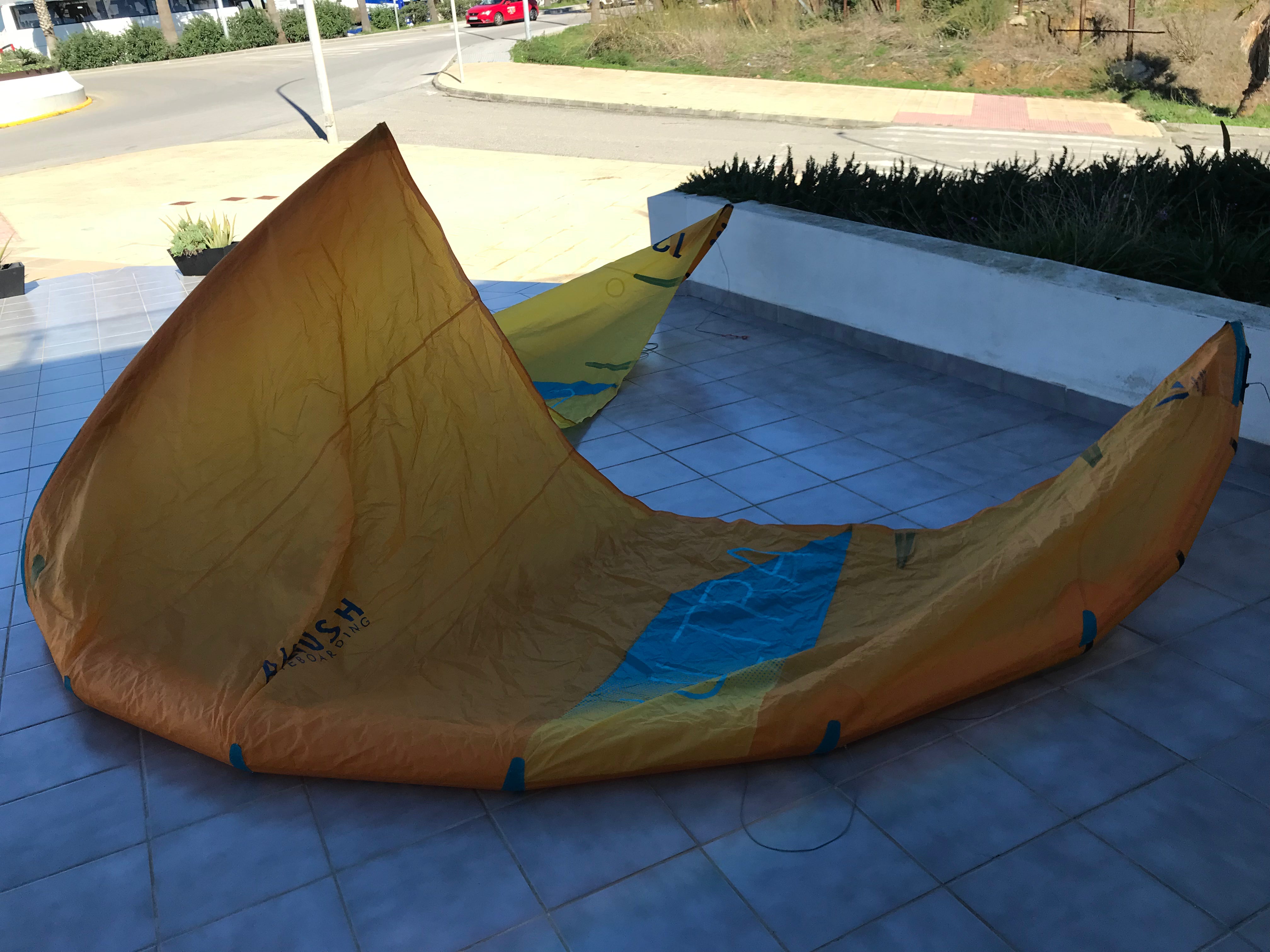 Good conditions, it has a couple of small repairs on the canopy, also a couple of micropores with plastic patch to protect, also one of the seams came undone in a small part and we had to redo it; you can see everything in the photos.